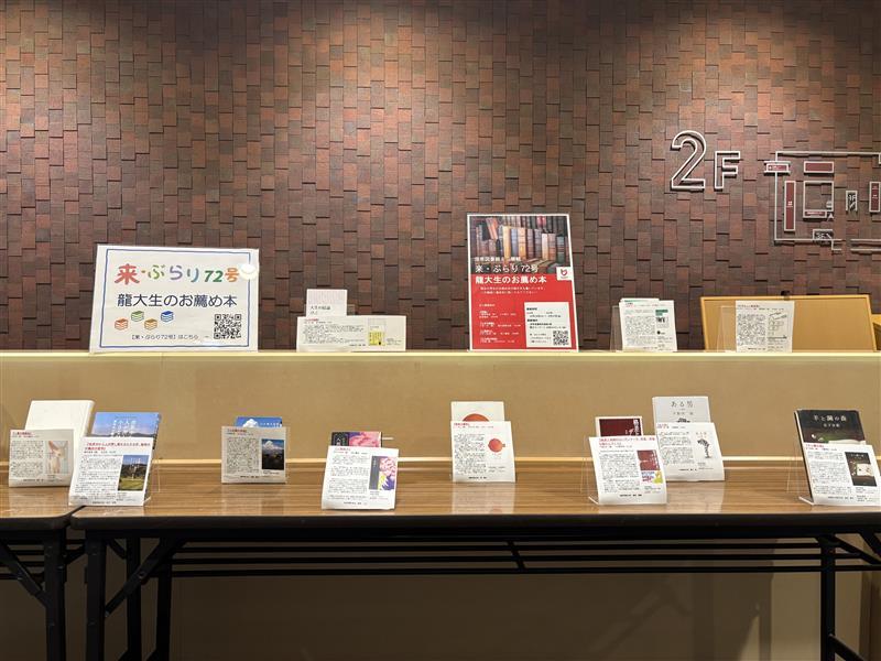 深草図書館では2階展観コーナーにて【来・ぶらり72号】に掲載されている『龍大生のお薦め本』を学生の紹介文と共にご紹介しています。
