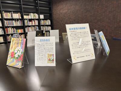 今回の展観では、新たな絵本表現に光を当て、12冊の紹介をしています。(絵本は閉架書庫にもたくさん所蔵されています)